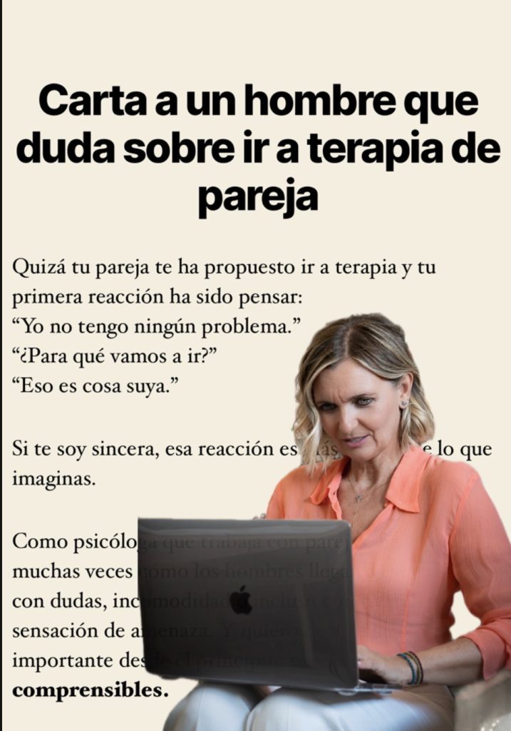 La terapia es simplemente un espacio donde poder entender mejor lo que está pasando entre los dos. Venga de quien venga.
